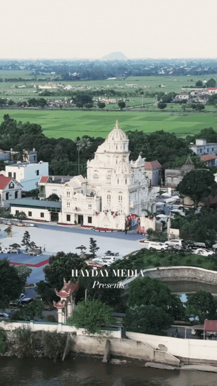 Ngay từ những giây đầu của đoạn video ghi lại lễ cưới, cư dân mạng đã không khỏi trầm trồ khi thấy toàn cảnh tư gia nhà trai - một tòa lâu đài trắng dát vàng nguy nga nằm sừng sững giữa khung cảnh thiên nhiên hữu tình. Lâu đài không chỉ toát lên vẻ quyền quý mà còn cho thấy gu thẩm mỹ và độ "chịu chi" của gia đình chú rể. Từng đường nét kiến trúc đều mang hơi hướng hoàng gia châu Âu, từ cổng vào cho đến chi tiết cột trụ, vòm mái tất cả như được "nhấc ra" từ một bộ phim cung điện cổ điển.