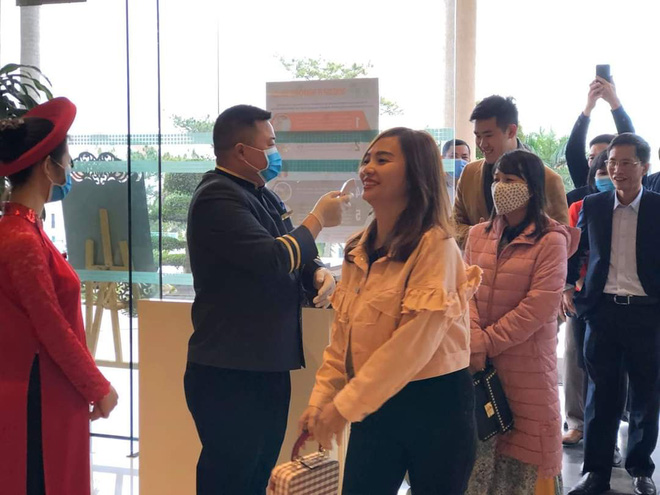 Những hình ảnh được chụp lại tại một nhà hàng ở Quang Ninh sau đây có lẽ chính là đáp án ổn nhất trong thời điểm hiện tại. Nếu như khách mời của đám cưới đều chủ động bảo vệ bản thân bằng việc đeo khẩu trang thì phía đơn vị tổ chức cũng đứng ra đo thân nhiệt cho khách trước khi vào dự tiệc.
