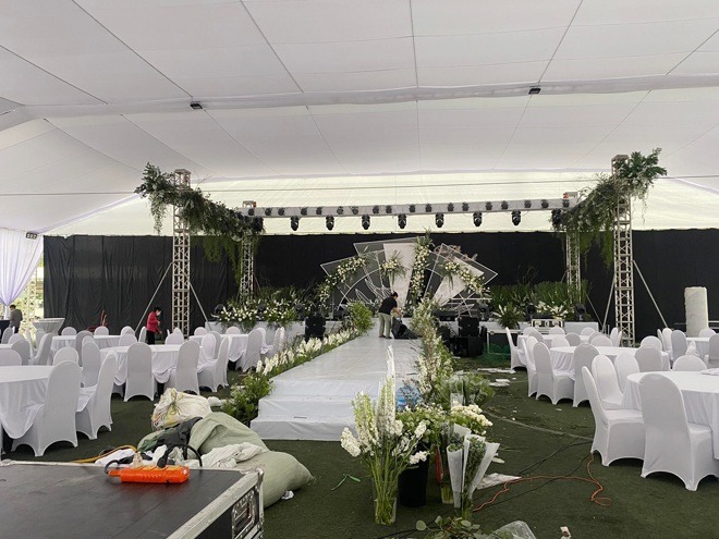 "Tổng chi phí cho thực đơn của đám cưới lên tới hàng tỷ đồng. Còn tiền trang trí không gian tiệc cưới cũng chẳng hề kém cạnh - 2 tỷ đồng với tông màu chủ đạo là trắng, tất cả đều trắng từ hoa tươi cho đến khăn trải bàn, thậm chí đội ngũ phục vụ cũng mặc áo sơ mi trắng", anh Nguyễn Tú nhấn mạnh.