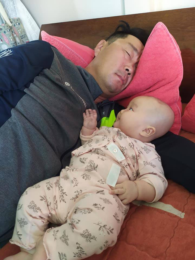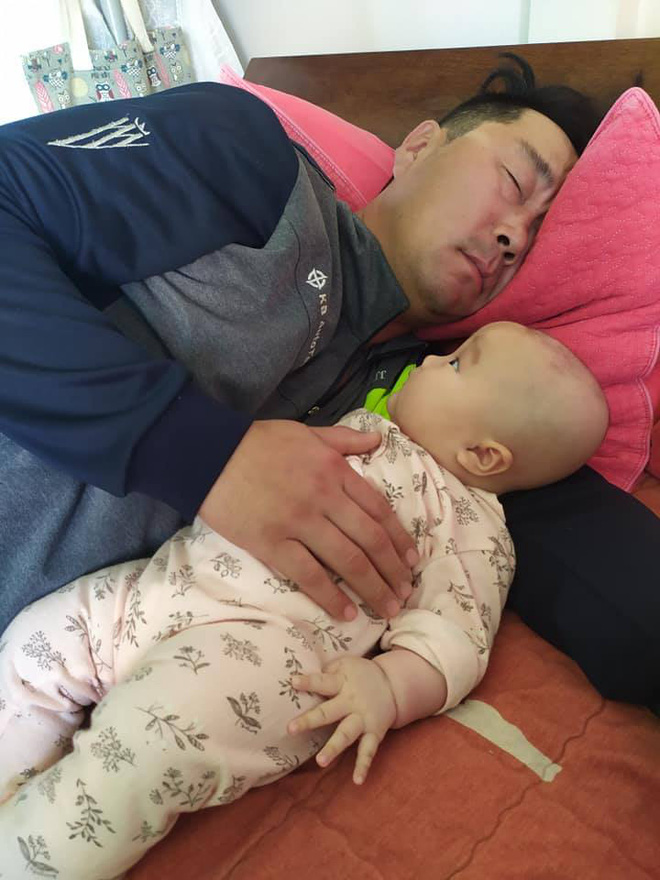 Người đàn ông dưới đây cũng vậy. Anh được vợ giao cho nhiệm vụ trông cô con gái 3 tháng tuổi và cho con ngủ. Thế nhưng khi con chưa kịp say giấc, bố đã thiếp đi từ lúc nào.