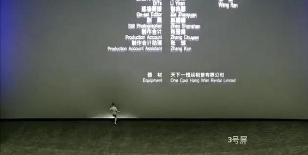 Ngày 2/5, một căn phòng tại một cụm rạp ở Đông Quan, Trung Quốc đã gặp một sự cố khi vừa chiếu xong một bộ phim. Theo đó, khi khán giả ra về gần hết, bộ phim đang chiếu phần behind the scenes, một cậu bé đã lao đến phía tước và dùng chân đá, đấm thật mạnh vào màn hình. Cảnh tượng này đã được một khán giả quay video lại và đăng tải lên mạng xã hội.