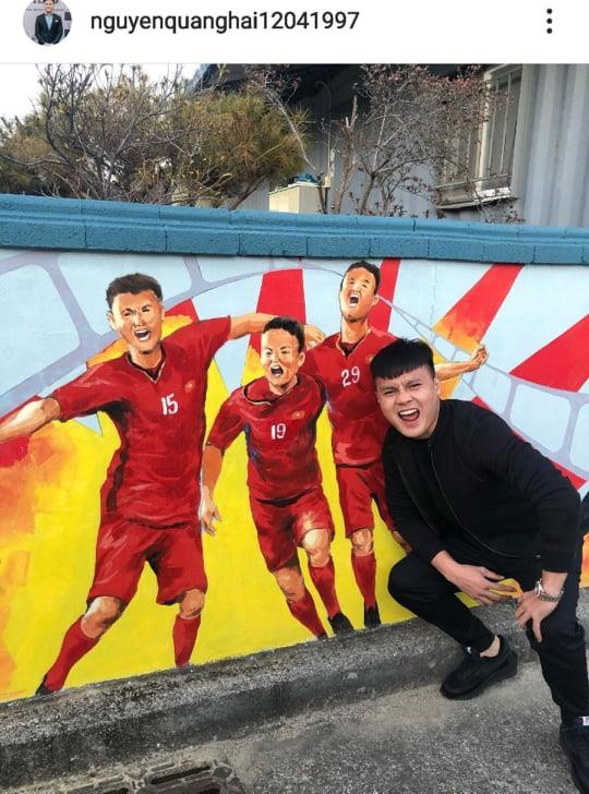 Mới đây, chàng cầu thủ điển trai Quang Hải cập nhật trang cá nhân check-in cùng bức tranh cùng dòng chia sẻ dí dỏm: "Về thăm bản của Sếp!" thu hút hàng trăm nghìn lượt thả tim trên Instagram từ người hâm mộ. Ngay sau đó, người hâm mộ nhanh chóng lục tìm lại những tấm hình chụp tranh bích hoạ tuyển Việt Nam trên quê hương HLV Park Hang Seo và chia sẻ lên mạng xã hội thu hút được hàng ngàn bình luận và chia sẻ.