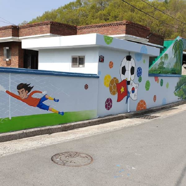 Sau khi Đội tuyển U23 Việt Nam trở về từ chiến thắng tại Thường Châu (Trung Quốc), những bức vẽ bắt đầu được thực hiện tại ngôi làng.Hình ảnh HLV ông Park Hang-seo, các cầu thủ đội tuyển Việt Nam xuất hiện khắp các con ngõ. Không chỉ có bóng đá, các họa sĩ còn vẽ nhiều hình ảnh danh lam thắng cảnh, di tích lịch sử và nét văn hóa người Việt như vịnh Hạ Long, Khuê Văn Các hay tà áo dài.