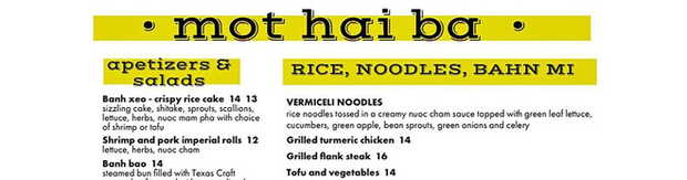 "Mot Hai Ba" là tên một nhà hàng chuyên bán các món ăn đậm chất Việt Nam toạ lạc ở thành phố Dallas, bang Texas, Mỹ. Mới đây, bếp trưởng của nhà hàng này - Peja Krstic đã vấp phải phản ứng gay gắt từ cộng đồng mạng khi đăng tải hình ảnh giới thiệu món bánh mì trong thực đơn nhưng lại viết sai tên thành "bahn mi".