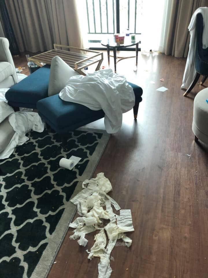 "Eo ôi nhìn mà muốn nôn ngay tại chỗ, thể loại người gì mà ăn ở chán chê xong phá phòng khách sạn người ta như kia?".