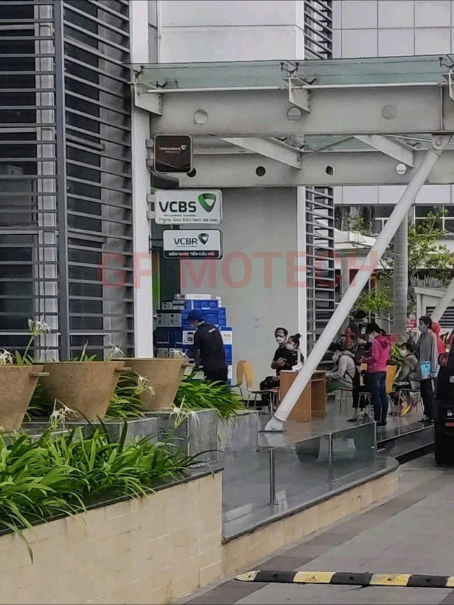 Ngoài những dòng trạng thái nhắc nhở các nhân viên ngân hàng V cần "chuẩn bị tinh thần, ăn mặc chỉnh tề, chuẩn bị lên sóng", dân mạng còn truyền tay nhau những bức ảnh được cho là chụp trước một chi nhánh của ngân hàng V - nơi dự kiến Công Vinh và Thuỷ Tiên sẽ đến sao kê và livestream vào lúc 14h hôm nay.