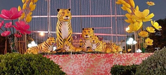 Năm nay, linh vật là chúa tể sơn lâm, từ đó, những chú hổ với nhiều kiểu tạo dáng phong phú đã xuất hiện trang hoàng đường phố thêm lung linh, sẵn sàng chào đón Tết Nguyên đán Nhâm Dần.