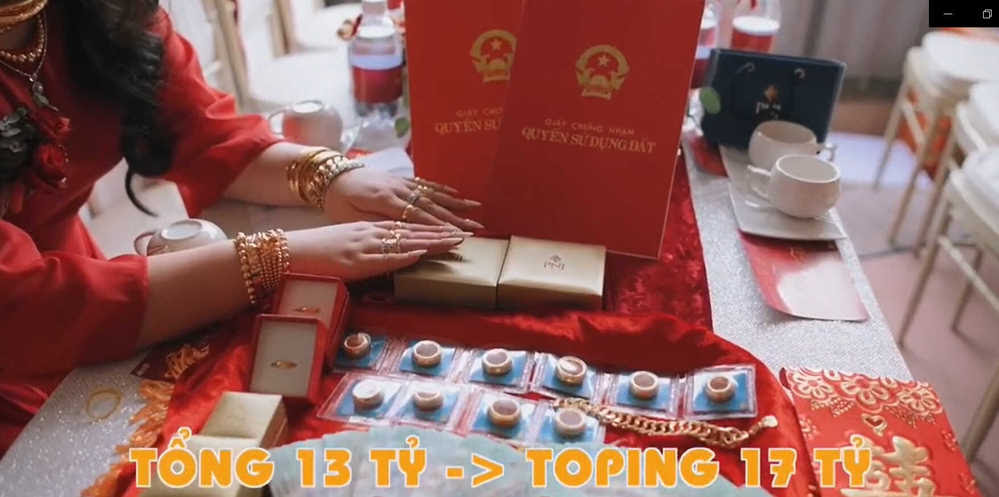 Không chỉ tặng nhà đất, sổ đỏ, bố mẹ cô dâu còn tặng cả vàng bạc, đá quý với mong muốn đôi vợ chồng trẻ có chút vốn liếng khởi nghiệp.