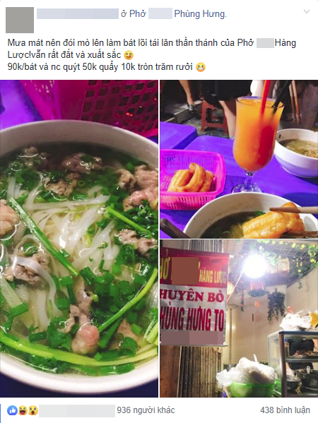 "150 nghìn combo phở, quẩy với nước, thà đi ăn nồi lẩu còn hơn, ở Phùng Hưng chả thiếu!".