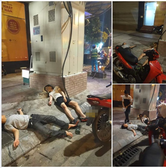Mới đây, cư dân mạng đã được một phen tranh cãi dữ dội với loạt ảnh chụp ghi hình 2 nam thanh niên nằm vạ vật bên lề đường, cạnh đó là chiếc xe máy được dựng ngay ngắn. Cả 2 người đều nằm ngửa trên hè phố, một người còn đội nguyên mũ bảo hiểm, đầu kê gần bốt điện khá nguy hiểm.