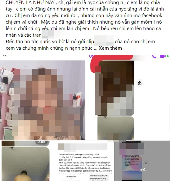 Chị em đã có người yêu mới rồi nhưng con này vẫn rình mò facebook chị em và thấy rồi chửi. Mặc dù đã nghe giải thích nhưng nó vẫn gân mồm lên nó lên nó chửi cả người yêu chị em lẫn chị em. Nó bêu riếu chị em lên trang cá nhân và các trang khác, gán cho chị em là 'gái bán hoa'.