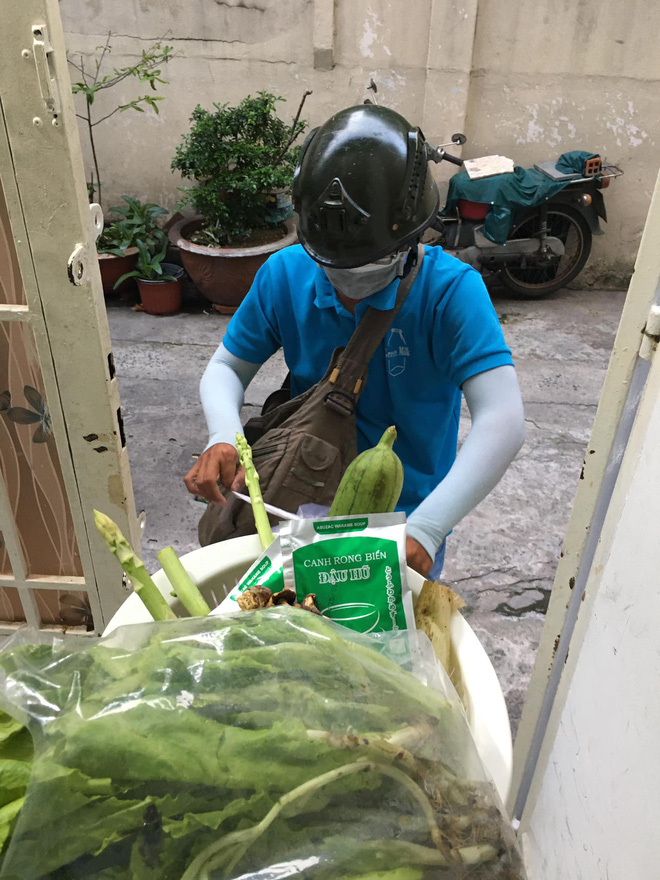 - A lô em ơi, có nhà không. Em kiếm cái rổ đi, thảy xuống đây anh cho cái này nè. Anh đi ship về tiện đường, đang ở trước hẻm nhà em rồi.