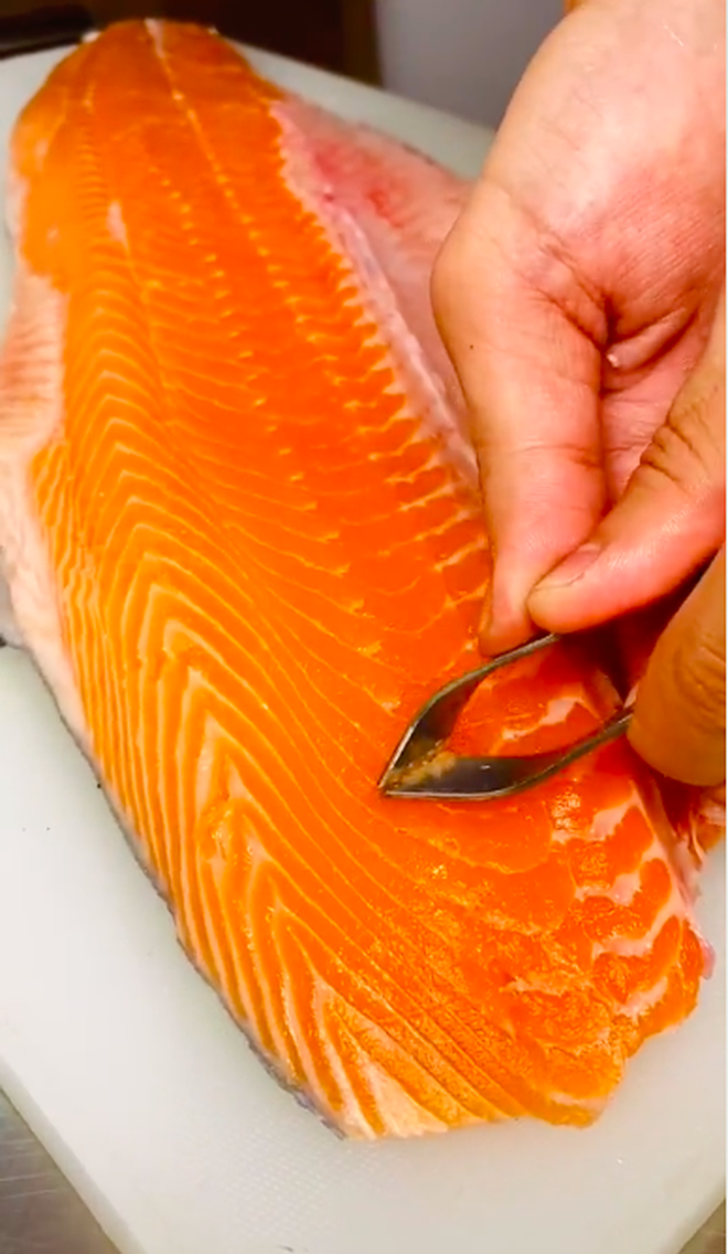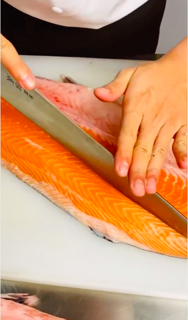 Mới đây, một chàng trai làm nghề đầu bếp trong nhà hàng Nhật đã đăng video chia sẻ về quá trình mà mình sơ chế một con cá hồi để tạo ra những miếng sashimi đẹp mắt cho khách thưởng thức.