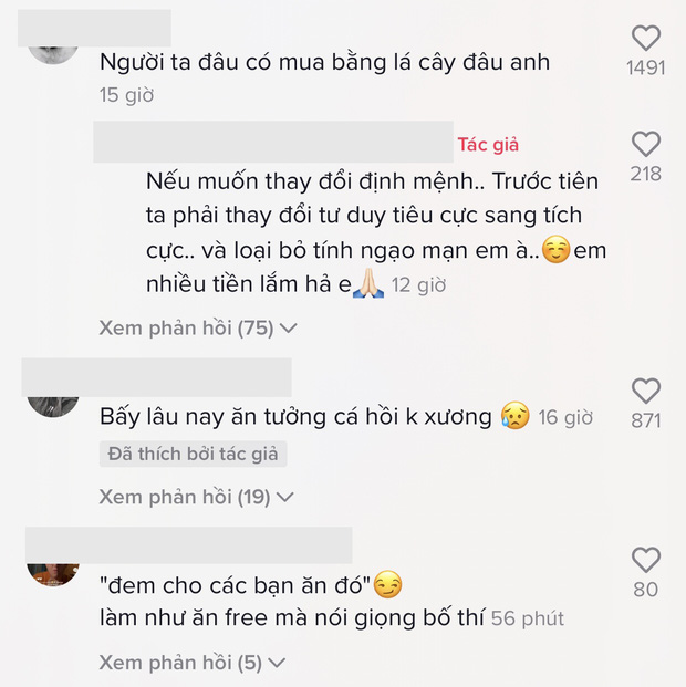 - "Người ta đâu có mua bằng lá cây đâu anh? Không lẽ bỏ tiền ra để ăn cá có xương à?"