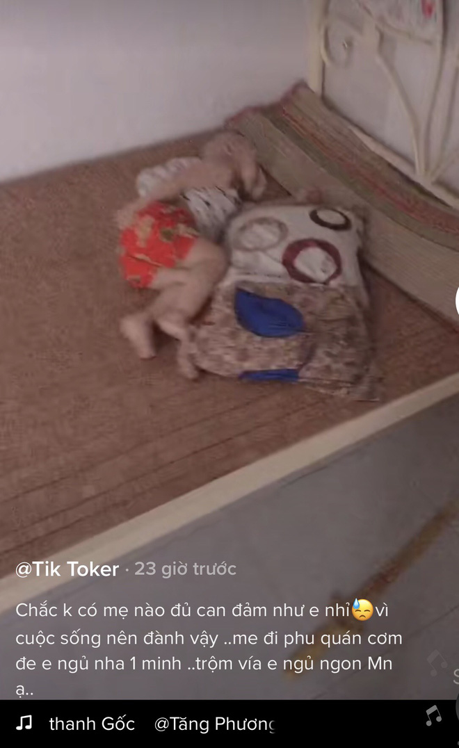 Chị Thảo chia sẻ: "Chắc không phải mẹ nào cũng dám làm như mình, mình đi phụ quán cơm, phải khóa cửa phòng để con nằm ngủ ở nhà. Trộm vía thằng bé ngủ ngoan, thương lắm".