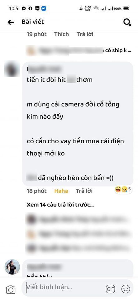 Tuy nhiên, điều khiến N.T bức xúc là chủ quán không hề biết nhận lỗi mà thậm chí còn sử dụng một nick Facebook ảo để chửi mắng, lăng mạ cô nàng với những lời lẽ xúc phạm như: "Tiền ít mà còn đòi ăn ngon", "mày dùng cái camera đời nào đấy, có cần cho vay tiền mua điện thoại mới không? đã nghèo hèn còn dơ bẩn", "tao lại ngán mày quá cơ, giẻ rách", "ghen ăn tức ở"... Người này sau đó còn thách thức nữ sinh viên khi để lại địa chỉ của quán ăn.