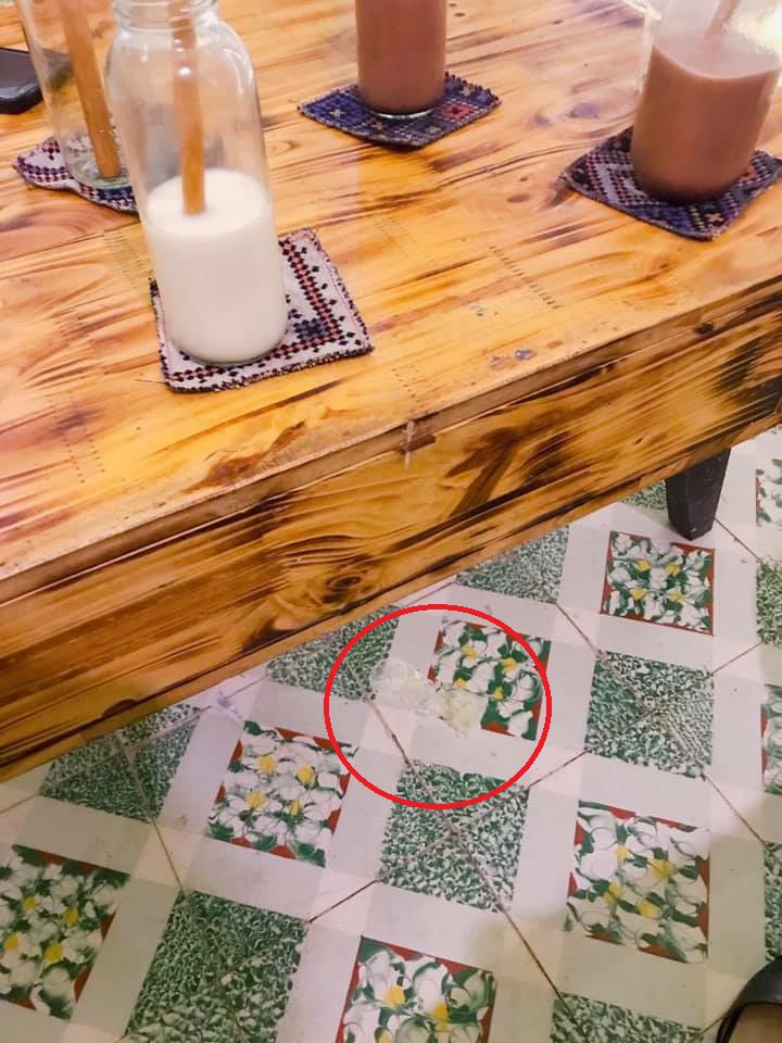 "Chả là được ngày tụ tập bạn bè nhân ngày lễ đẹp trời thế này, chúng mình chọn 1 địa điểm khá gần nhà là quán A.C. Đang ngồi nói chuyện rất rôm rả thì đột nhiên mình thấy cái gì sai sai dưới bức ảnh. Cúi xuống xem thì giật mình.