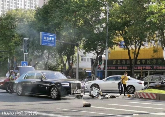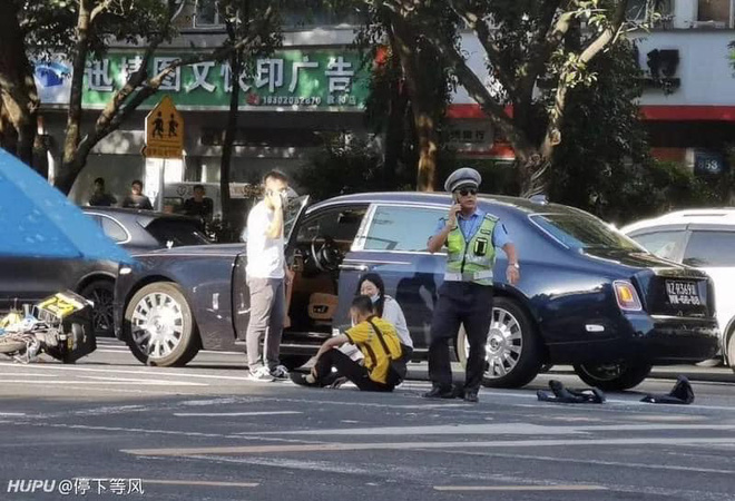 Ngay cạnh chiếc xe, nam shipper ngồi bệt giữa đường khóc vô cùng thê thảm. Cư dân mạng cho rằng anh chàng đã bất cẩn đâm vào chiếc ô tô sang chảnh do nữ tài xế điều khiển. Mặc dù phương tiện giao thông của anh ta hỏng nặng nề hơn nhưng tổn thương của chiếc Rolls Royce mới thực sự là nguyên nhân khiến anh ta sợ hãi vì không đủ khả năng đền bù.