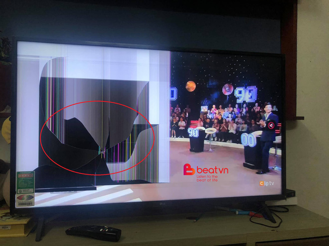Sau khi xảy ra đôi ba câu qua lại thì cô vợ tức quá đi thẳng ra chỗ để chiếc tivi cầm gậy đập giữa màn hình. Chiếc tivi đang lành lặn thì bỗng nứt vỡ.