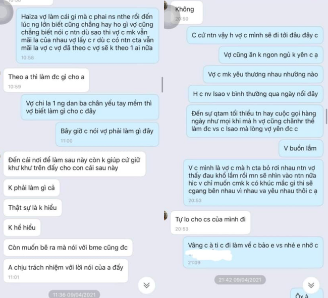 “Vợ làm cái gì mà chồng phải nói như thế đến lúc người lớn biết cũng chẳng hay ho gì. Vợ cũng chẳng biết nói chồng như thế nào, dù sao thì vợ chồng mình vẫn mãi là của nhau. Vợ lấy chồng rồi dù chồng có như thế nào chúng ta vẫn là vợ chồng, vợ đã theo chồng thì không theo 1 ai nữa.
