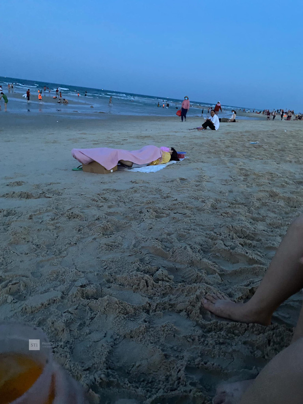 Giữa bãi cát, cô gái này thản nhiên trải khăn để nằm ngủ ngon lành, còn đắp chăn với tư thế duỗi thẳng thoải mái. Những người xung quanh ai cũng ngoái nhìn. Khi chia sẻ lên MXH, dân tình đều cảm thấy vừa ái ngại vừa… mắc cười: