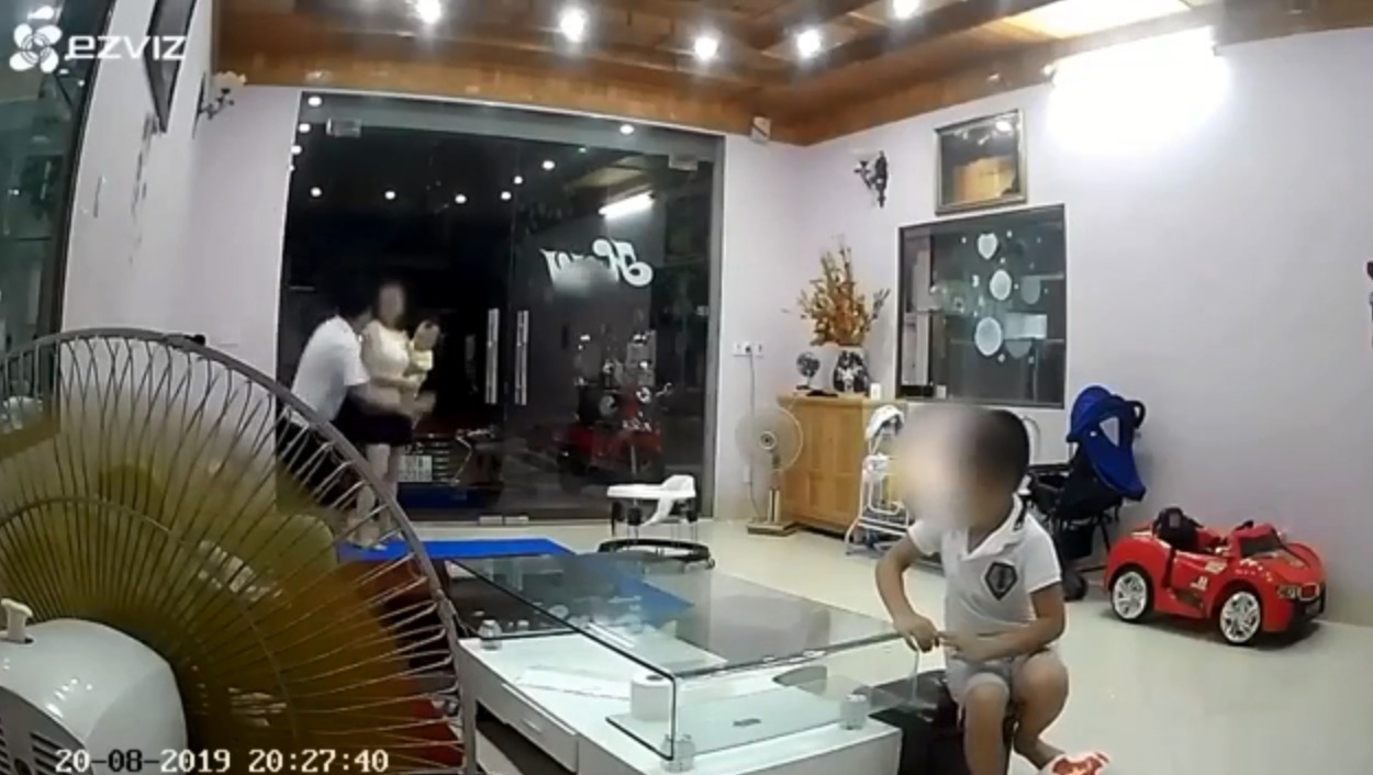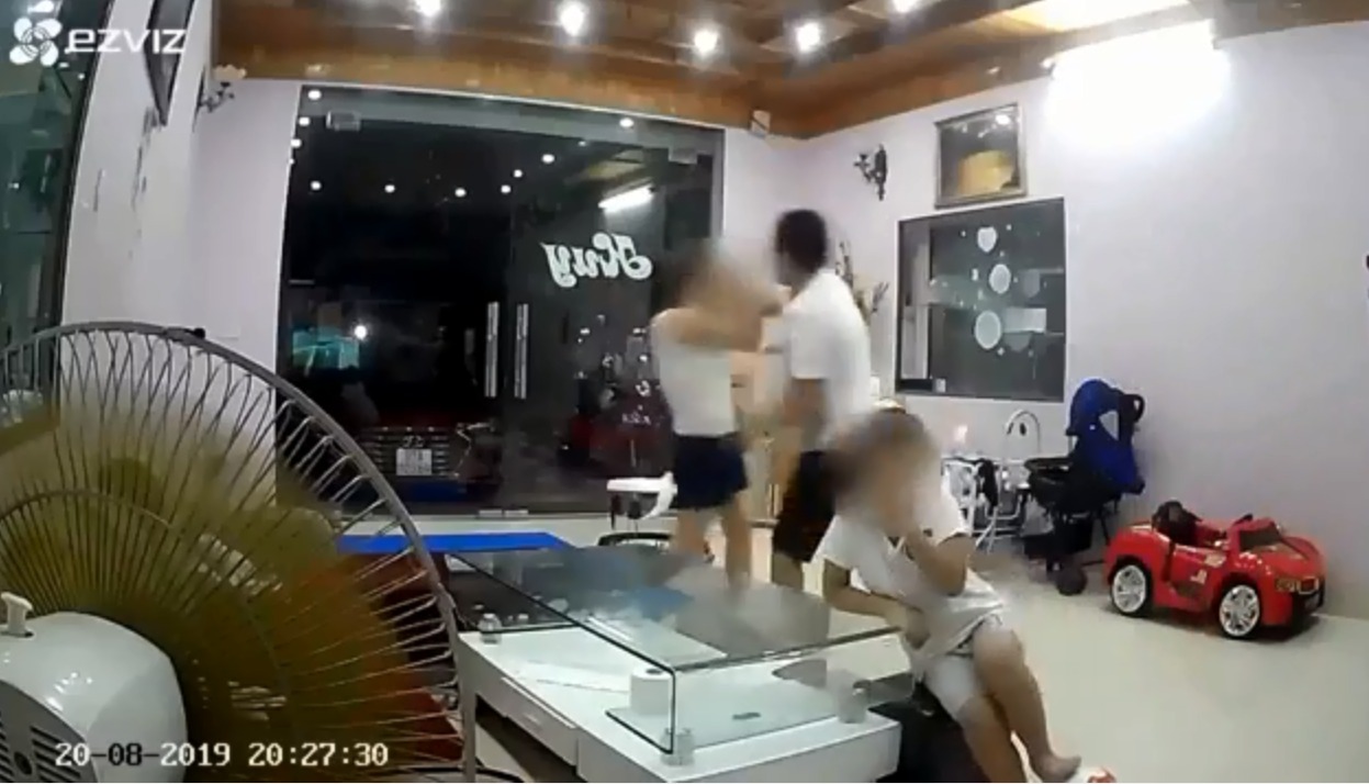 Theo hình ảnh được ghi lại, chị vợ dù đang bế con nhỏ và có 1 đứa trẻ nữa ngồi xem ti vi, anh chồng vẫn lao ra và tát tới tấp vào mặt, vào đầu vợ, không những thế, còn dùng chân đá vợ rồi chửi bới ầm nhà. Người vợ dù cố gắng vẫn không tránh được những cú tát xuống đầu và mặt như trời giáng của anh chồng, vừa đánh anh chồng vừa chửi: "Tao nói cho mày biết. Tao nhịn mày nhiều rồi đấy".