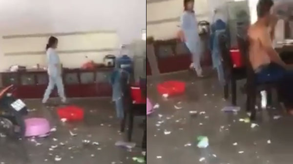 Sau khi "xả" hết cơn tức, người phụ nữ liền bỏ đi, để lại bãi chiến trường bát đĩa vương vãi toàn đống đổ nát.