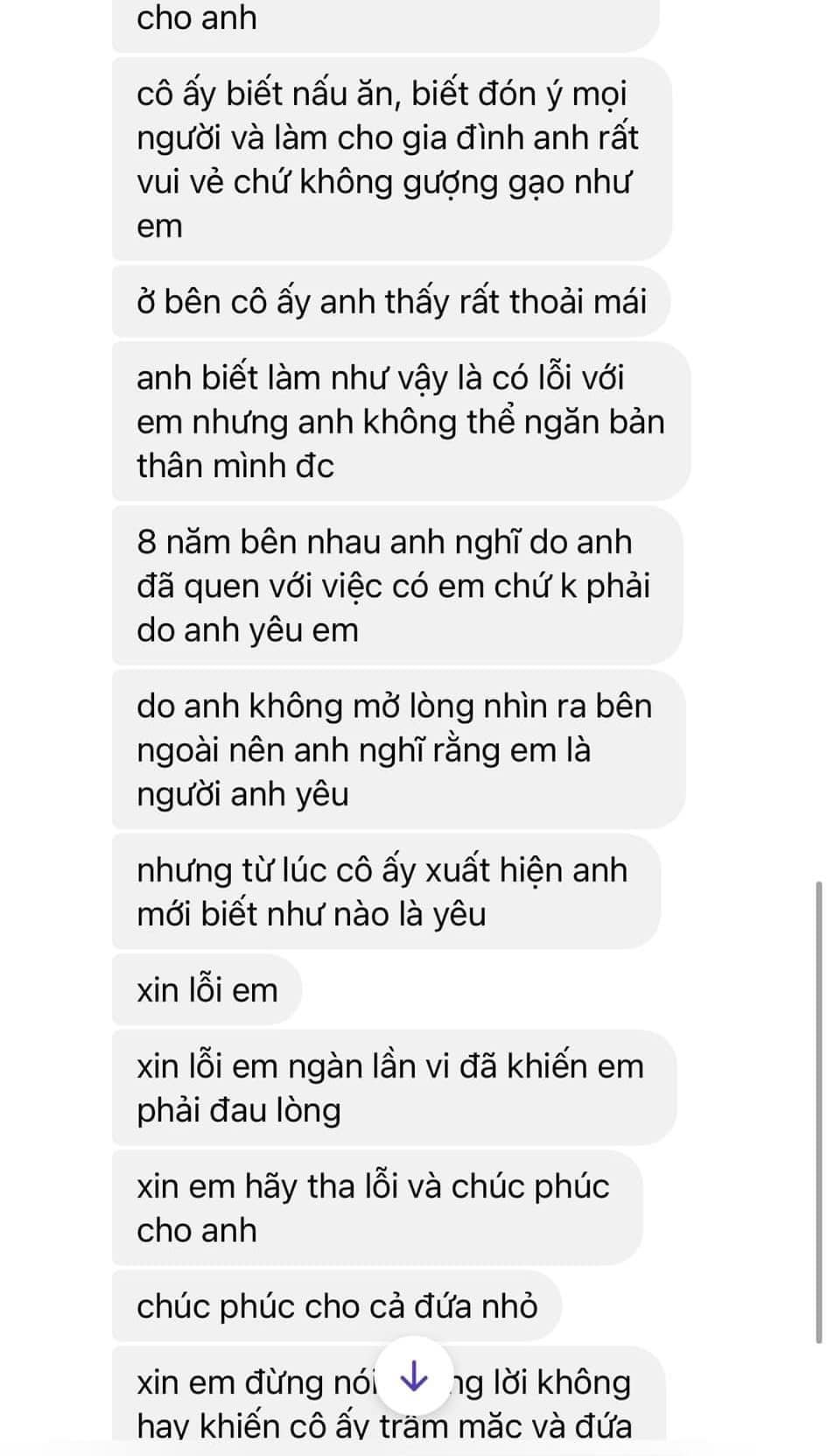 Đau lòng hơn là anh nói cô bé đó đã có thai được 6 tuần, em nghe xong mà em lặng người luôn, em bỏ đi, em không biết nói gì nữa các chị ạ, em đi lang thang 1 ngày 1 đêm, lúc em về phòng thì anh đã dọn đồ đi và nhắn tin cho em như vậy.