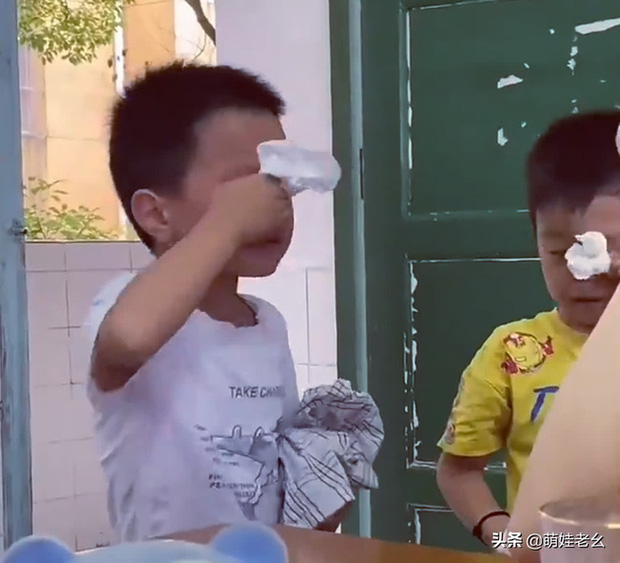 Cô giáo chưa kịp hỏi han, hai cậu nhỏ cứ thế thi nhau ngồi khóc nức nở. Khi được giáo viên dỗ dành an ủi thì cậu bé áo vàng ấm ức "mách tội" bạn: "Con đánh bạn nhẹ hều thôi à mà bạn đánh con đau quá trời!".