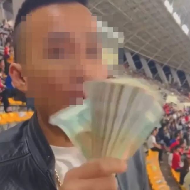 Cụ thể, khi thấy Việt Nam toàn thắng, người này đã cầm trên tay rất nhiều tiền mặt và đi phát cho mọi người ở xung quanh khán đài khu vực ngồi của mình.