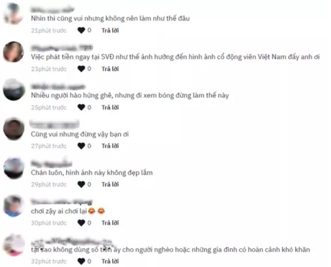 Ở phần bình luận bài đăng, trong khi một số bày tỏ ngưỡng mộ với độ chịu chơi của anh N.L., số khác lại cho rằng hành động này hơi "quá lố", không phù hợp khi xem một trận đấu bóng.