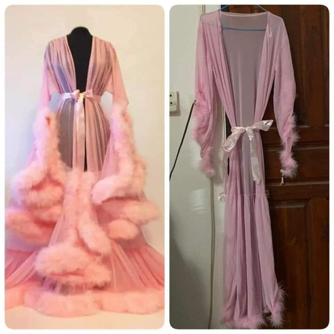 Mới đây, một dân mạng khổ sở chia sẻ thành quả mua hàng online của mình lên mạng xã hội. Theo lời tâm sự thì cô gái sắp đi Sa Pa du lịch. Bởi vậy cô đặt một chiếc áo choàng dài màu hồng đào, tay và viền gấu áo có lông dày và ấm áp. Chiếc áo theo phong cách tiên nữ, thích hợp để chụp những bộ ảnh trên núi cao, mờ sương ở Sa Pa.