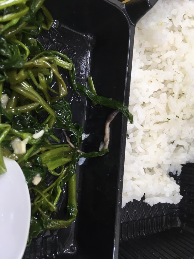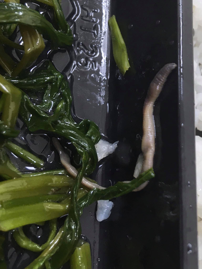 Mới đây, một vị khách hàng thân thiết của dịch vụ gọi đồ ăn ngoài đã chia sẻ lên mạng xã hội hình ảnh hộp cơm mình gọi về. Khi hí hửng mở hộp cơm, thanh niên liền tá hỏa vì trong phần rau xào được tặng kèm thêm một con giun.