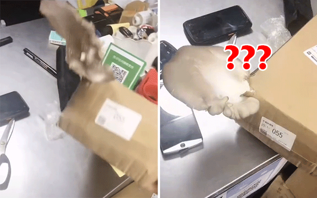 Không những thế, đôi khi, việc ship hàng lâu còn dẫn đến những tình huống vô cùng trớ trêu và dở khóc dở cười. Như mới đây, một hộp hàng mà vị khách vừa nhận được đã được ghi lại clip khiến cho dân tình không nhịn được cười bởi thứ vừa "mọc" ra từ chiếc hộp.