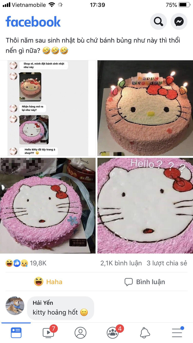 Cụ thể, chủ nhân bài đăng thú nhận "chán không buồn thổi nến", đến mức phải phản hồi trực tiếp với chủ tiệm khi nhận chiếc bánh kem hình mặt mèo Hello Kitty khác xa tưởng tượng.