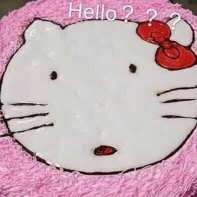Trái ngược hoàn toàn với ảnh mẫu, ở chiếc bánh nhận được mặt mèo Kitty trông như bị "biến dạng", độ xinh xắn giảm đi rất nhiều như đã được "tẩy trang".