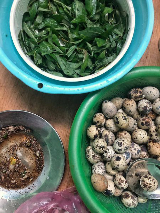 Theo đó, một anh chàng nọ đã đặt mua 50 trái trứng cút lộn ship. Khi nhận hàng cũng thấy shop tặng kèm cả rau răm các kiểu. Cũng đang thèm nên anh chàng cũng tiện vào bếp chế biến luôn. Luộc trứng, nhặt rau, pha muối tiêu chanh, còn tính để riêng 20 trái làm cút lộn xào me.