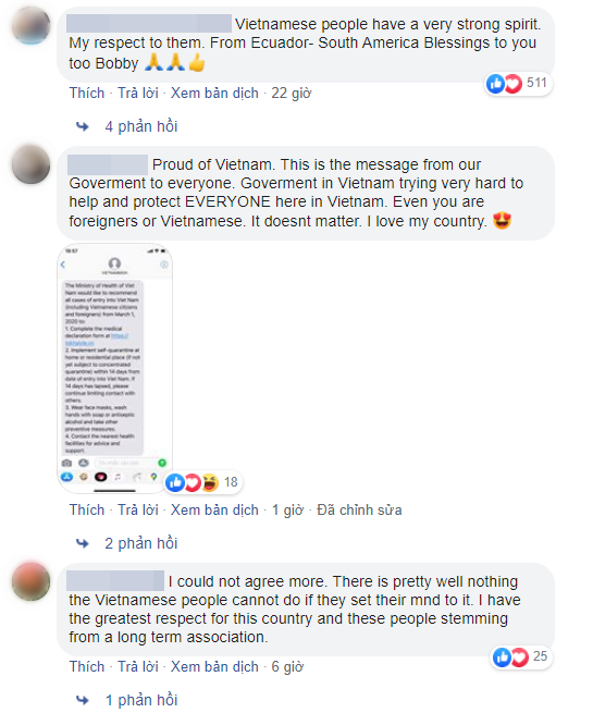 Sự hi sinh hết mình vì nhân dân đất nước và nghị lực mạnh mẽ của họ đã khiến cho bạn bè quốc tế nể phục vô cùng. Rất nhiều thành viên mạng từ khắp các quốc gia đã dành tặng những lời tốt đẹp cho các "anh hùng" màn trời chiếu đất này, dù không thể giúp đỡ được gì nhưng họ cũng mong dịch sớm được đẩy lùi, gửi tấm lòng biết ơn đến những người đang nỗ lực hết sức vì cộng đồng.