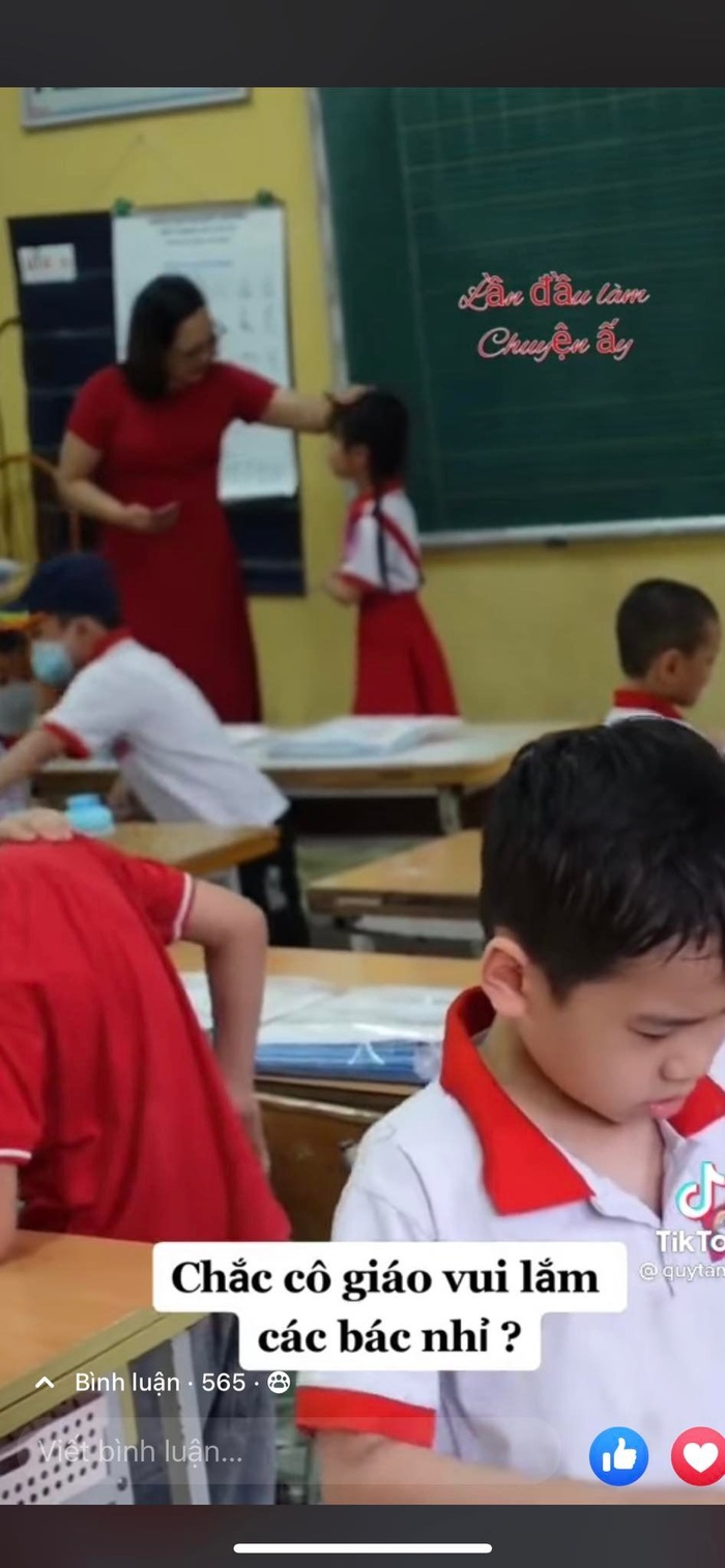 - "Hai bố con đáng yêu quá. Xem mà cảm động rớt nước mắt. Ai cũng như vậy thi giáo viên chúng em đỡ tủi thân."