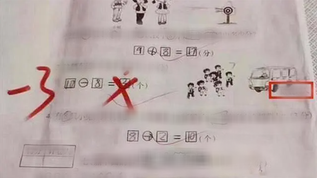 Làm bài đúng không sao, nhưng nếu để cha mẹ mất công tính toán mà vẫn sai thì xấu hổ lắm! Như mới đây, một bà mẹ ở Trung Quốc đã chia sẻ bài tập của con gái mình tính ra "10 - 7 = 3" nhưng vẫn bị giáo viên gạch sai.