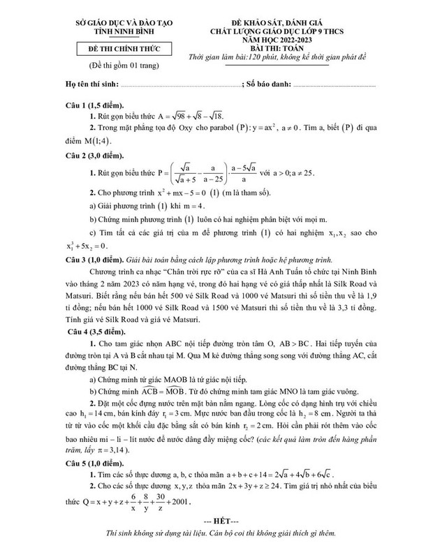 30/04/2023 16:30Đêm nhạc của Hà Anh Tuấn lên luôn đề thi Toán ở Ninh Bình