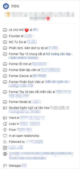 Thế này, phần profile nho nhỏ của mỗi người trên Facebook là để giới thiệu qua về bản thân hoặc công việc/tổ chức mà bạn đang làm việc. Về cơ bản thì đó là chức năng của nó, chứ không phải chỗ để khoe khoang đâu! Để profile dài dằng dặc với ti tỉ hoạt động mà bạn từng tham gia chỉ khiến người khác hoang mang hoặc phì cười thôi.