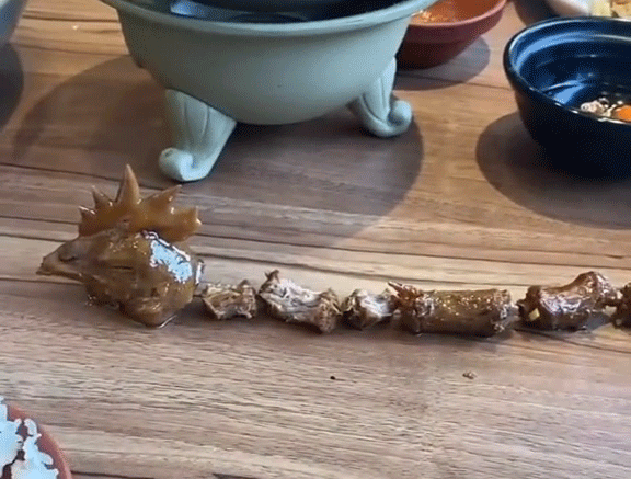 Sau khi mọi người ngồi cùng mâm đã tìm hết những miếng cổ (đã được chặt ra) để ghép lại cùng chiếc đầu gà thì phát hiện ra một con gà có chiếc cổ vô cùng kì dị.
