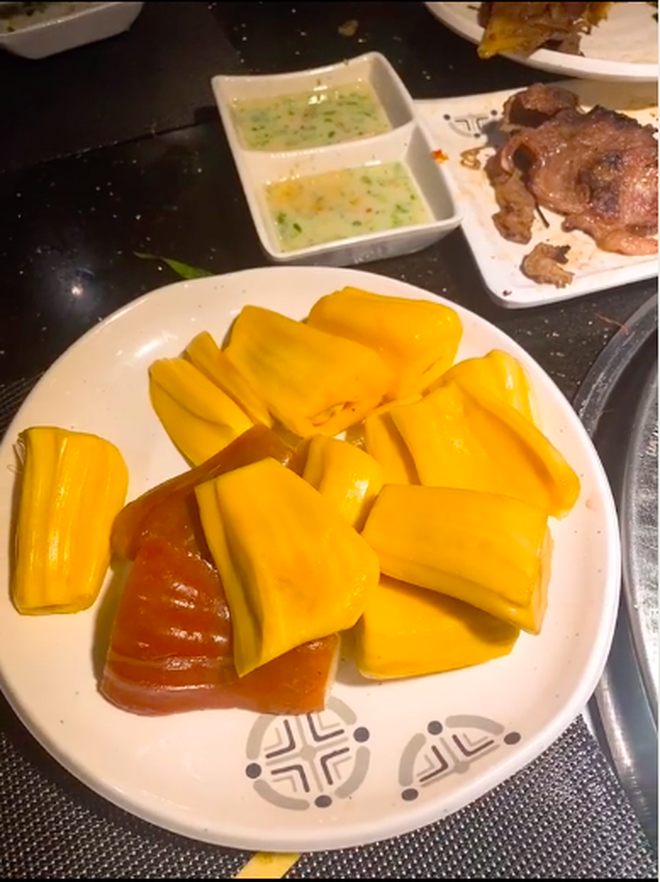 Hôm nay, nhà hàng phục vụ mít và mận như loại trái cây tráng miệng cho thực khách. Điều đáng nói là sau khi ăn xong, những thành viên trong gia đình đã tận dụng luôn… hạt mít cho lên bếp nướng và ăn ngay tại chỗ.