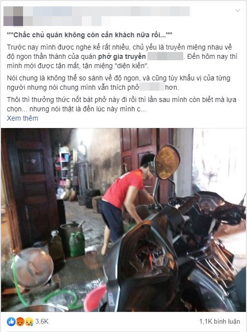 Anh L.H cũng đảm bảo sự thật của câu chuyện và chia sẻ thêm: "Nói thật là đến lúc này mình cũng không bao giờ muốn chọn hàng phở này nữa rồi. Không phải vì đợi lâu, không phải vì phở không ngon, không phải vì ngồi chật dã man mà vì thái độ và ý thức quá tệ của cửa hàng".