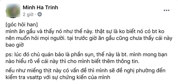 Vừa mới đây, một thanh niên đã chia sẻ tình huống đi ăn phở của mình nhờ cư dân mạng giải đáp. Chuyện là đang ăn thì vị thực khách này bắt gặp một miếng thịt có hình thù rất lạ, thậm chí nhìn còn hơi có phần nổi da gà. Ngay lập tức hỏi chủ quán thì anh nhận được câu trả lời đó là phần sụn (?). Điều này đúng là rất lạ vì trước giờ sụn có màu trắng và không lấm tấm như thế này.