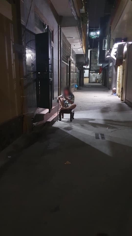Sau khi về nhà, hình ảnh anh không mong muốn thấy nhất đã diễn ra. Cô vợ mang cả ghế ra ngồi ở cửa, tay cầm gậy chờ chồng về nhà.