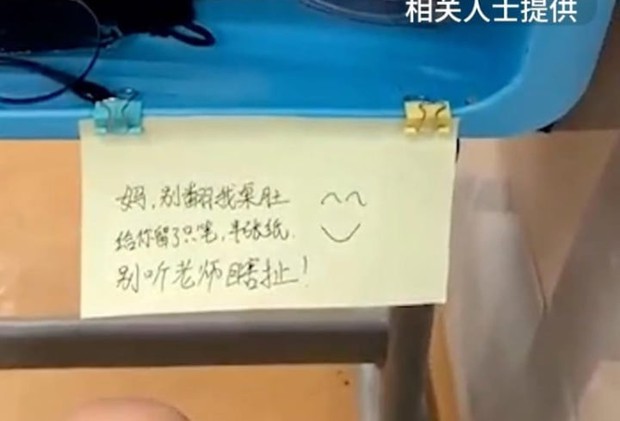Chẳng là cậu nhóc này có thành tích khá tệ, đến ngày họp phụ huynh, lo sợ sau khi mẹ về sẽ bị mắng một trận nên cậu nhóc đã để lại một mẩu giấy note ngay vị trí mình ngồi với nội dung: "Mẹ, đừng kiểm tra bàn học của con. Con để lại cho mẹ một cái bút và một mẩu giấy nhỏ. Đừng nghe những lời vô nghĩa của giáo viên trong buổi họp phụ huynh nhé". Một mặt còn lại của tờ giấy, cậu bé còn vẽ hình mặt cười để nịnh mẹ.