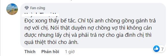 Bên cạnh đó, một bộ phận không nhỏ bày tỏ sự ngưỡng mộ dành cho người chồng, khi nai lưng ra làm để trả nợ cho nhà ngoại mà không than vãn lấy một lời. Thực sự, người con rể như vậy là của hiếm trong xã hội hiện đại.