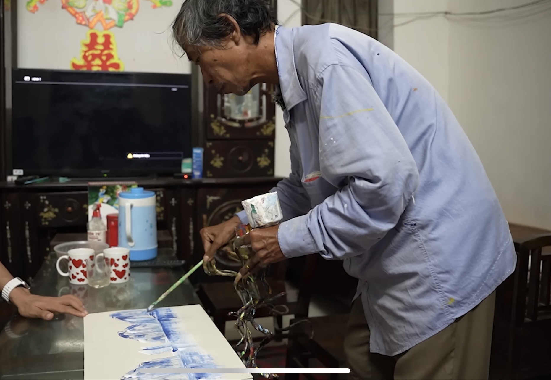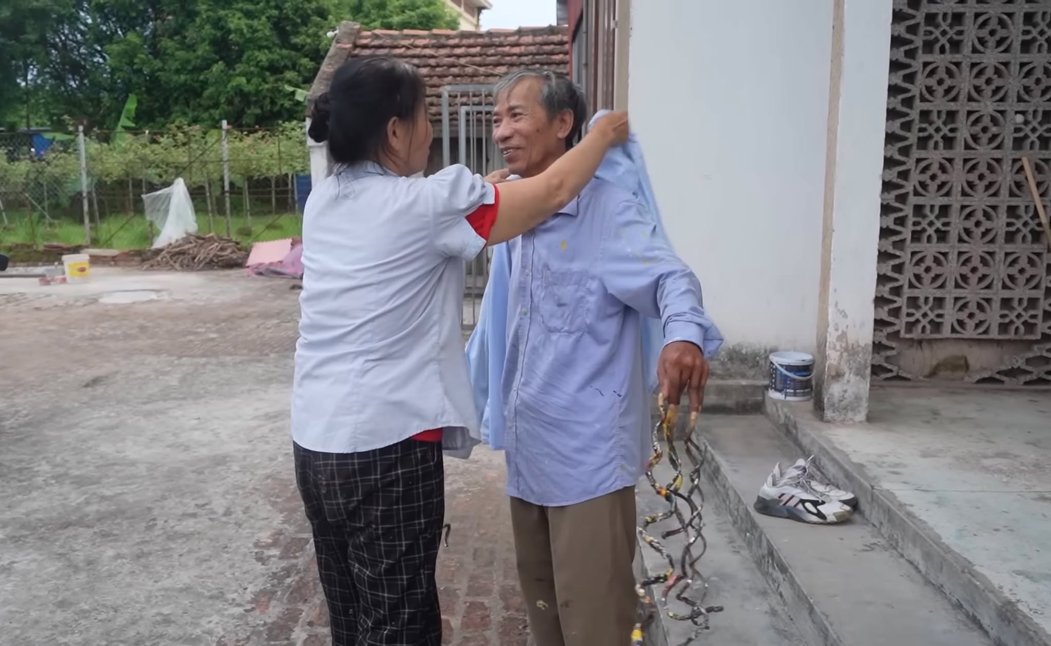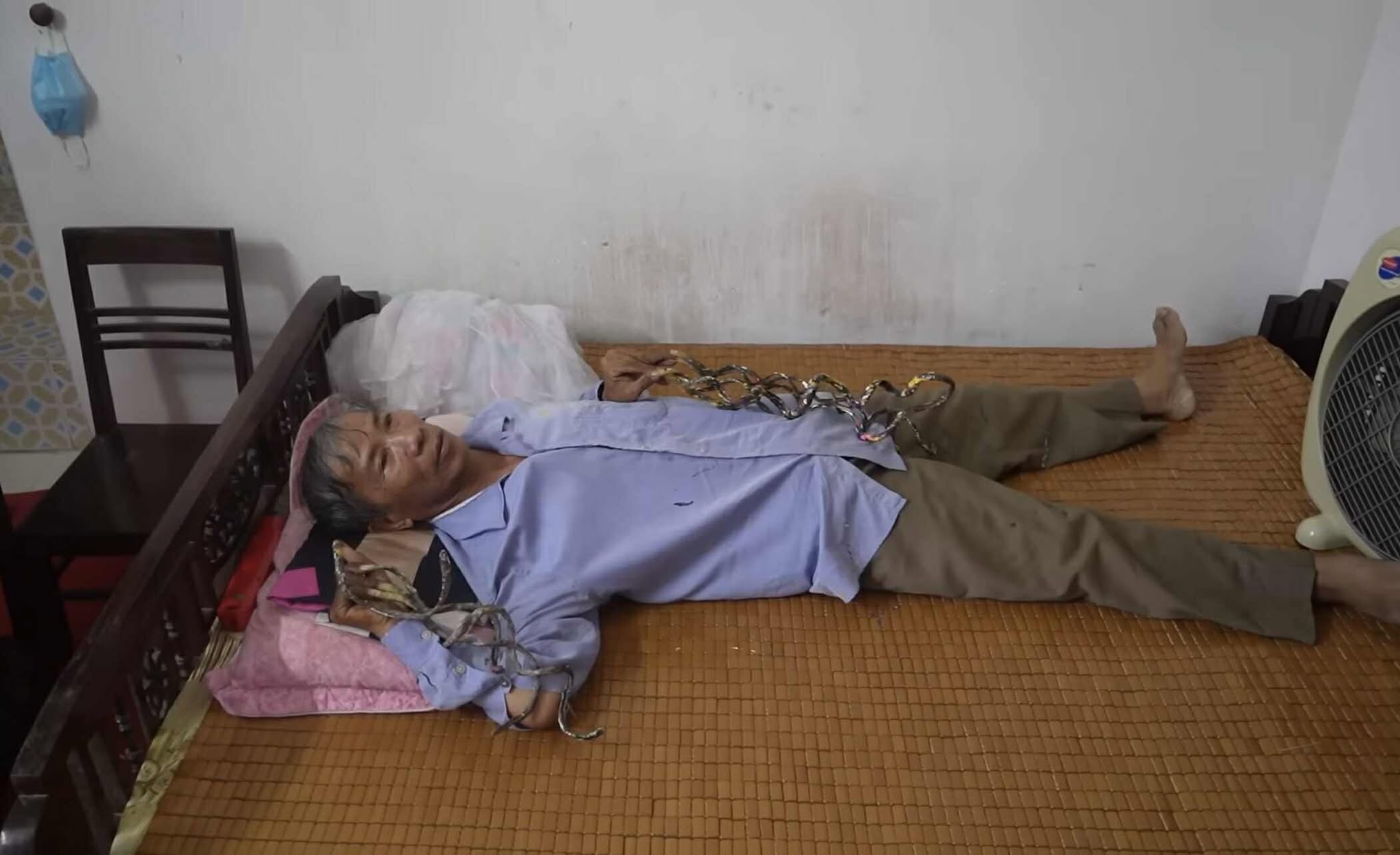 Mỗi lần mặc áo cho ông Huyền cũng phải tốn 10 - 15 phút, chưa kể phải cực kỳ khéo léo mới cho tay vào được. Hôm nào ông có việc phải đi làm từ sáng sớm thì bà Thuận lại mặc áo cho chồng từ tối hôm trước cho đỡ vội.